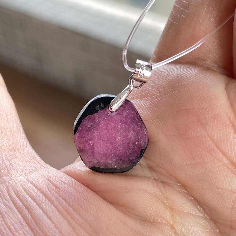色は主に紫赤色が流通されておりますが、透明で赤色の物は宝石として高値で取引されております。