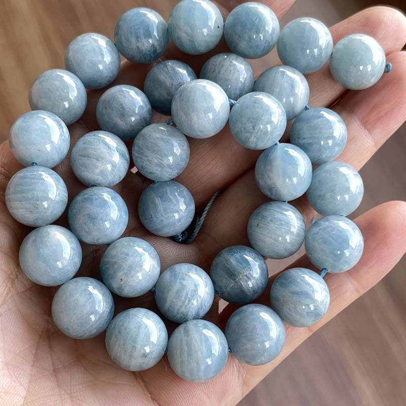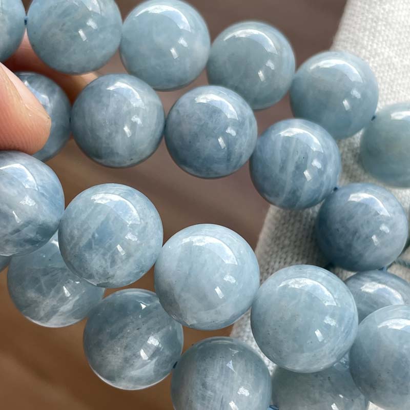 新入荷激安!希少品★ラウンド★アクアマリン★【藍柱石】★高品質★マットタイプ★AA+★12mm★現品★一連販売