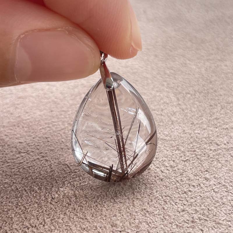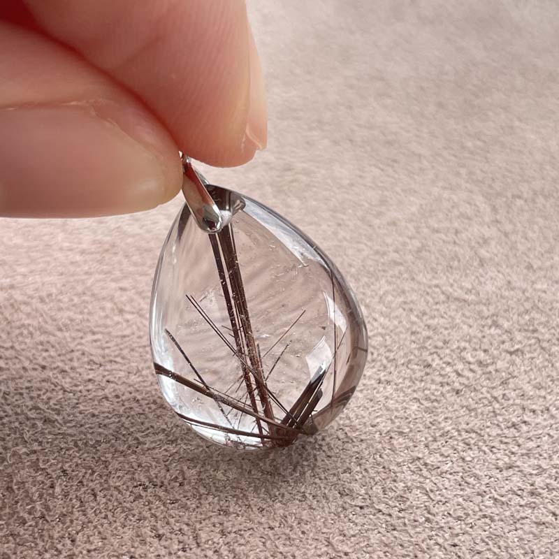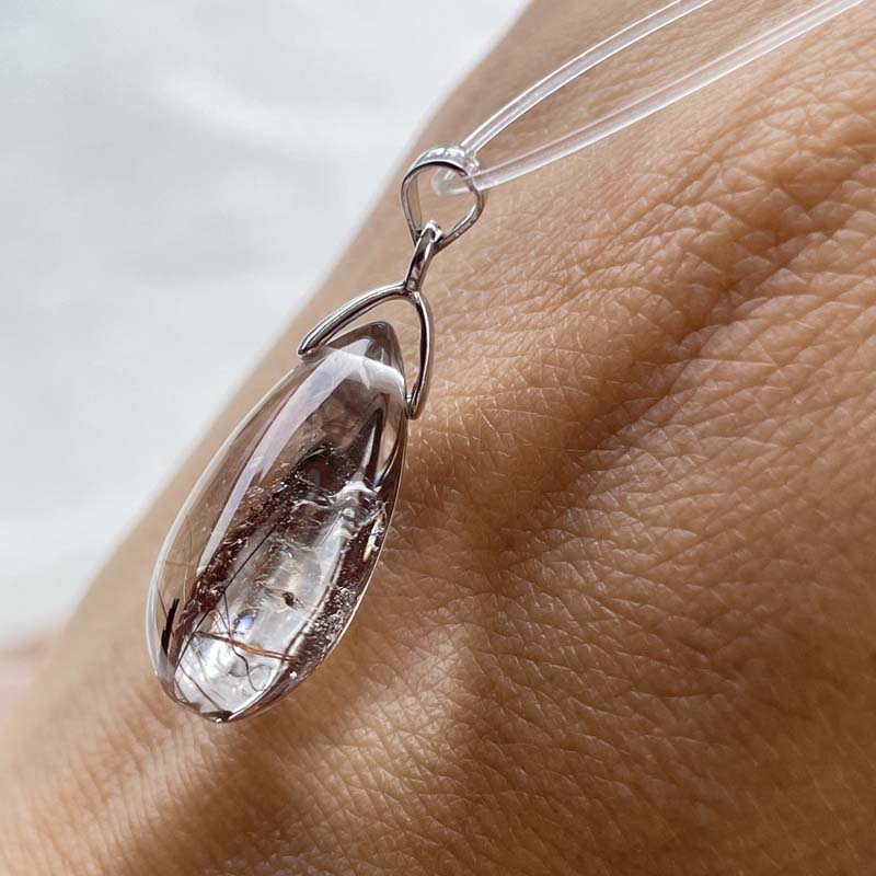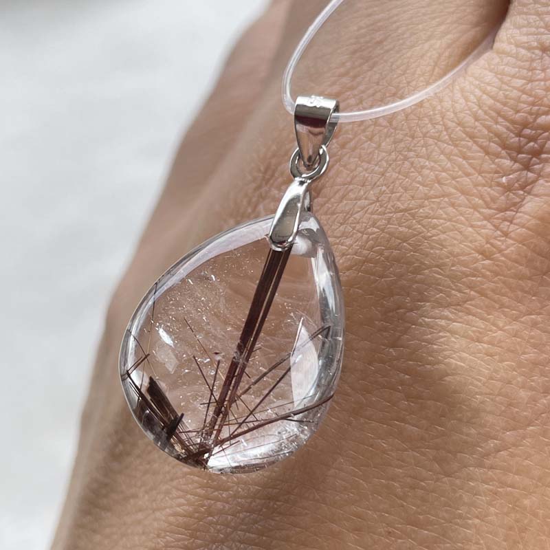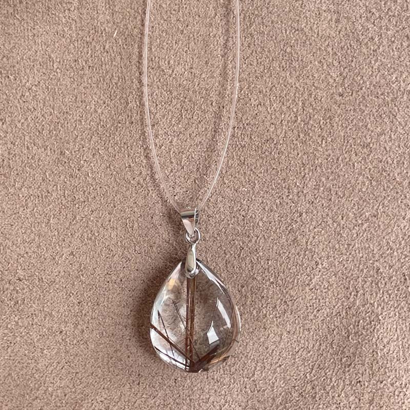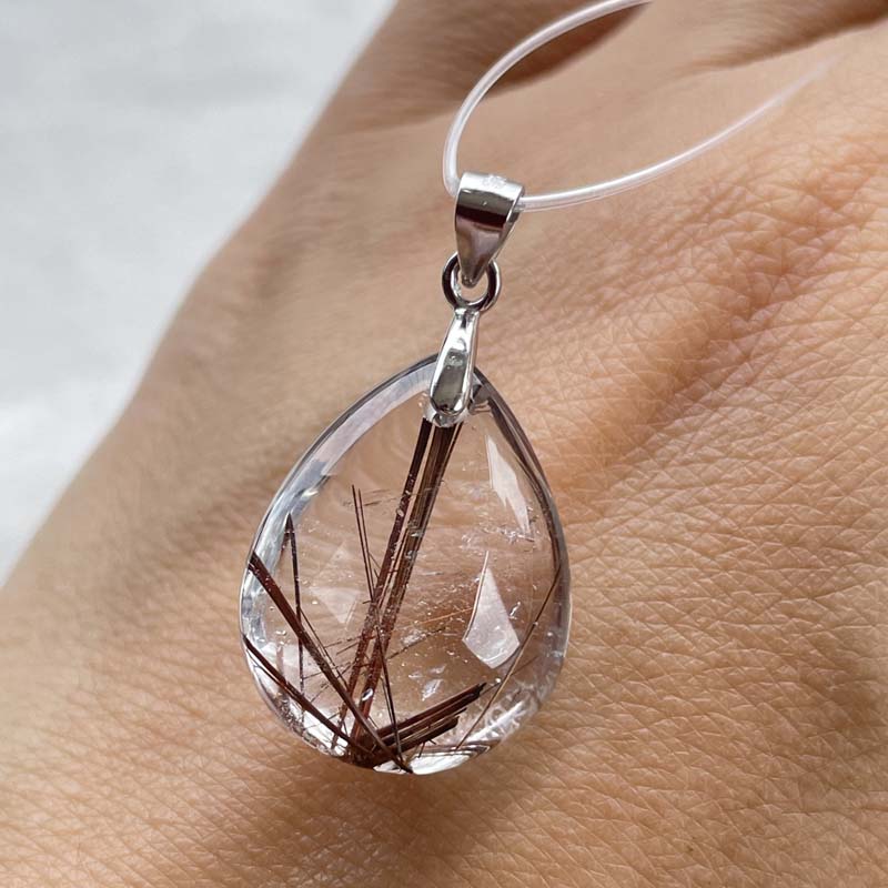 激安★レッドルチルクォーツ★両面ぷっくりタイプ★ ペンダントトップ★しずく形★925シルバー製★現品★No.P-7