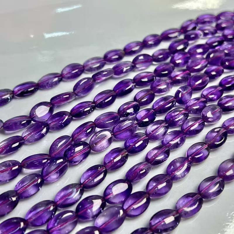 新入荷激安★高品質★オーバル型★キラキラ★天然無処理★アメジスト★ウルグアイ産★【紫水晶】★約8×12mm★1連販売