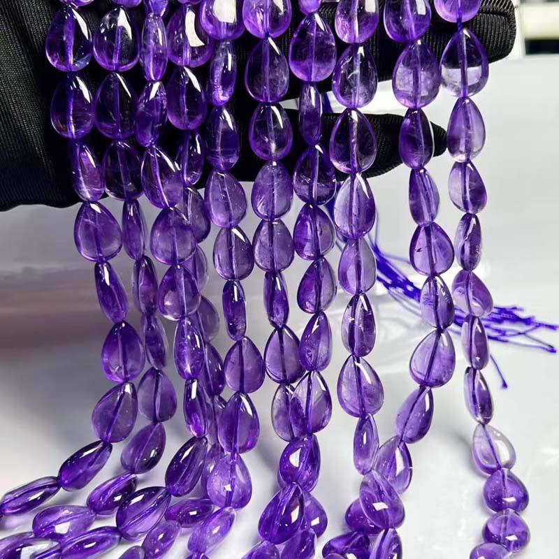 新入荷激安★高品質★しずく型★キラキラ★天然無処理★アメジスト★ウルグアイ産★【紫水晶】★約10×14mm★1連販売