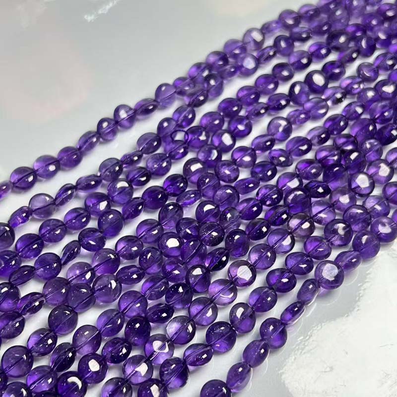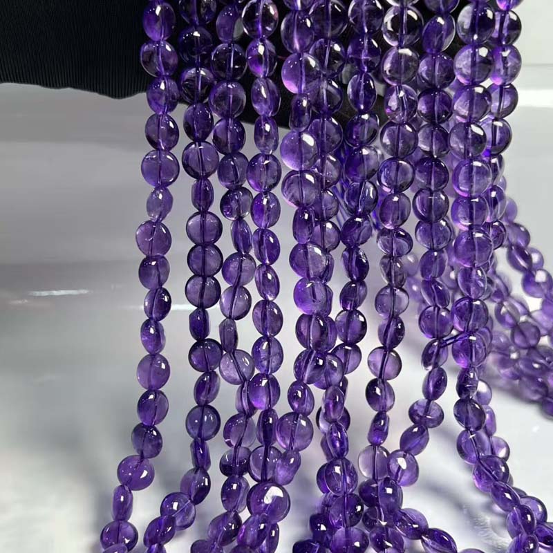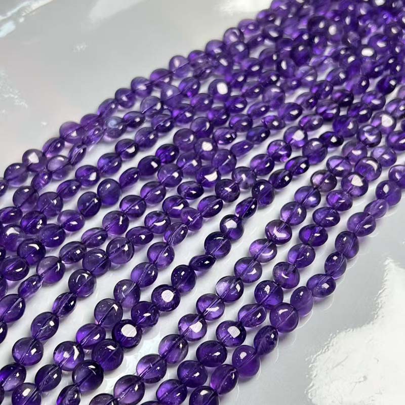新入荷激安★高品質★コイン型★キラキラ★天然無処理★アメジスト★ウルグアイ産★【紫水晶】★直径約8mm★1連販売