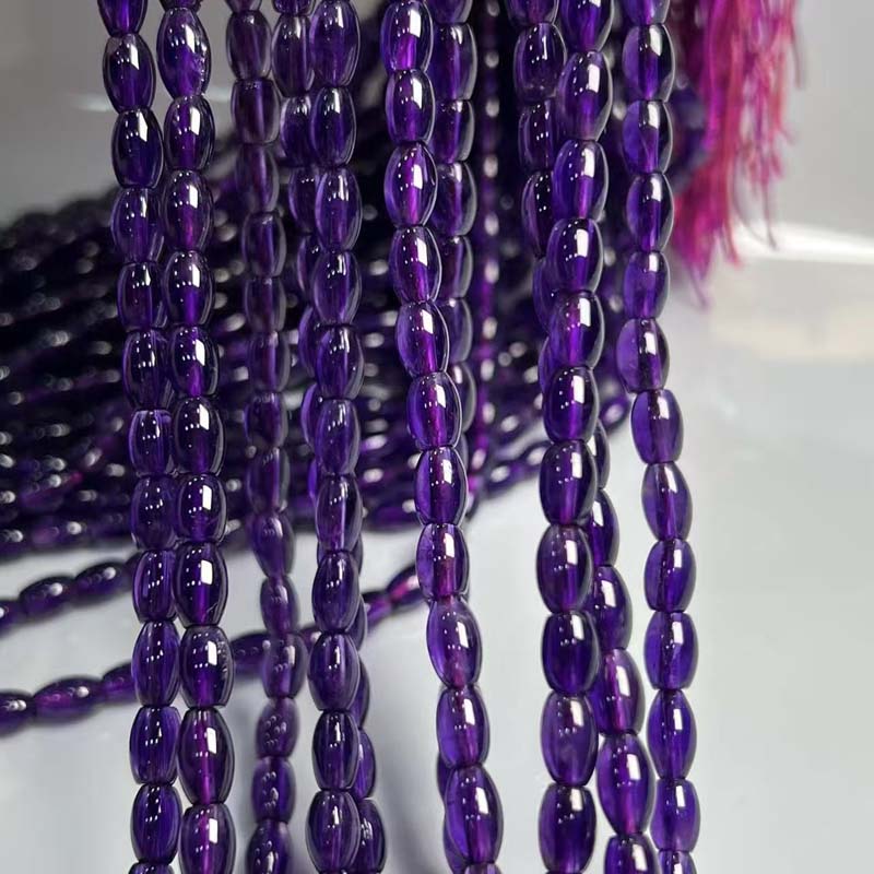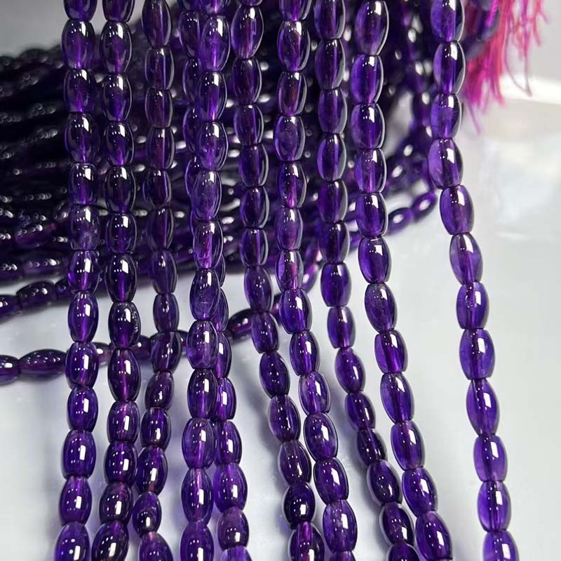 新入荷激安★高品質★ライス型★キラキラ★天然無処理★アメジスト★ウルグアイ産★【紫水晶】★約5×8mm★1連販売