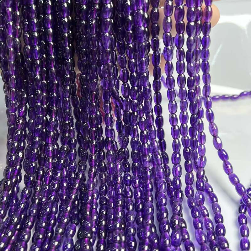 激安★高品質★ライス型★キラキラ★天然無処理★アメジスト★ウルグアイ産★【紫水晶】★約5×8mm★1連販売