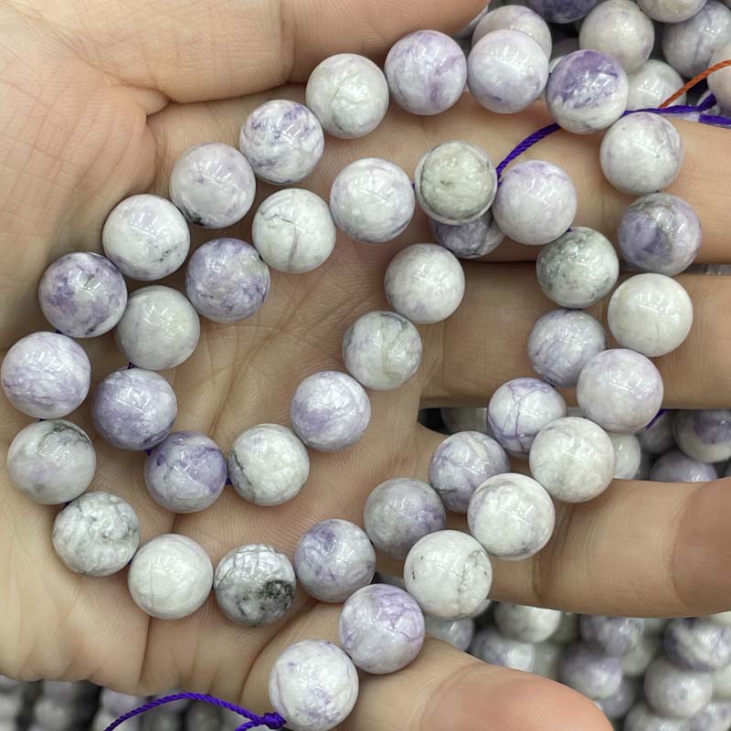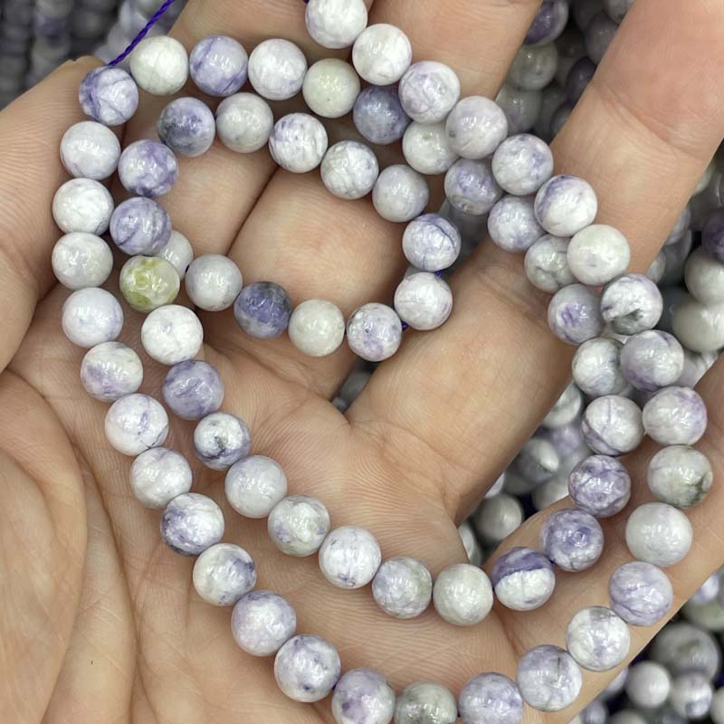 激安★ラウンド★天然色★パープルハウライト★【菱苦土石】★ブラジル産★各サイズ★一連販売★New