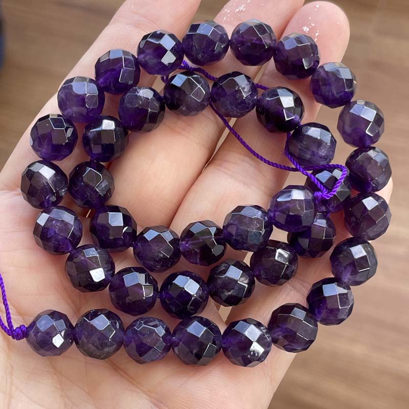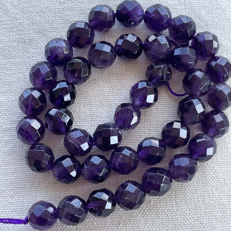 激安★キラキラ★64面ミラーボールカット★アメジストビーズ★紫水晶★AA★10mm★一連販売
