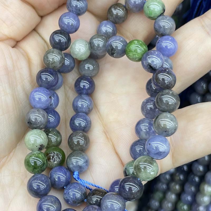 激安★タンザナイト★タンザニア産★黝簾石★光沢感あり★7/9/11mm★一連販売