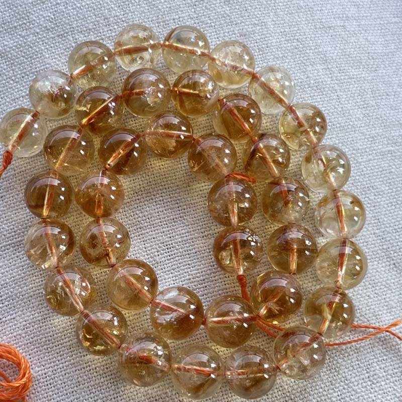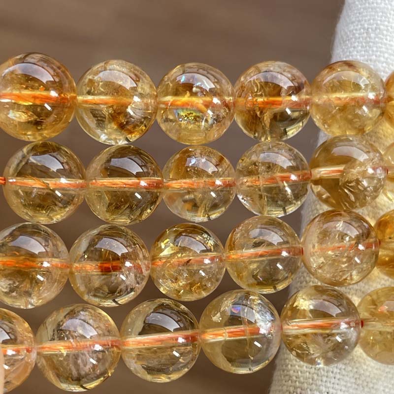 新入荷激安!希少品★エンジェルフェザーシトリン★黄水晶★レインボー入り★10mm★シトリン★一連販売