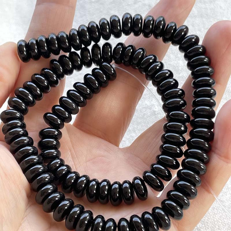 新入荷激安★ソロバン型★ブラックオニキス★【黒瑪瑙】★AAA★ボタン★約3×6/4×8mm★一連販売