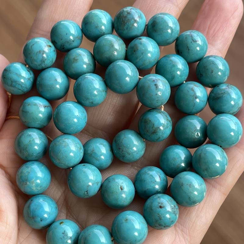 希少!天然色★ターコイズ◆トルコ石◆ブルー色★中国・湖北産★10mm◆一連販売◆現品◆No.T-1