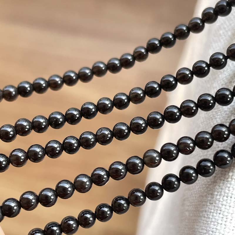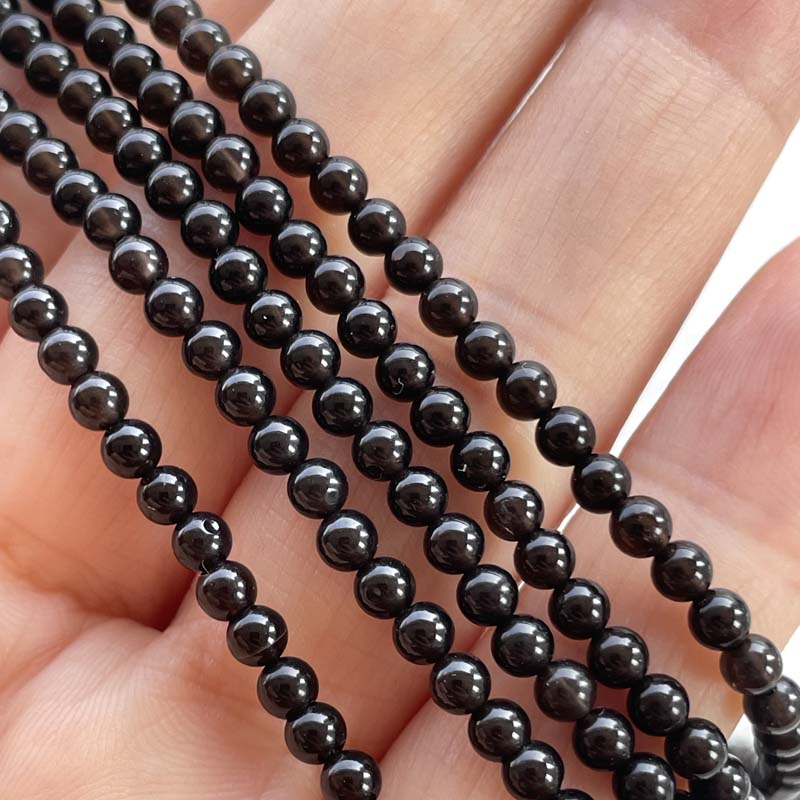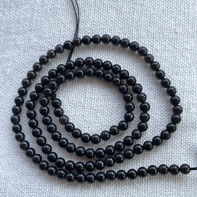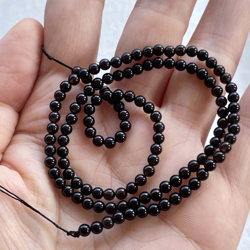 ★激安★ラウンド★ロシア産★モリオン★【黒水晶】★AAAA★約3mm★一連販売