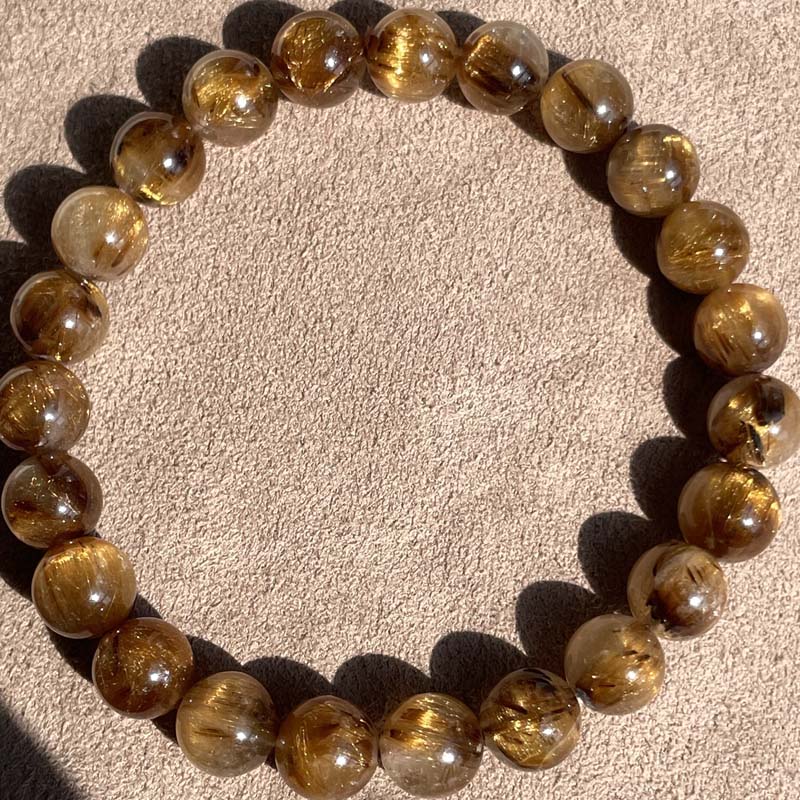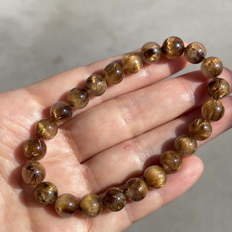 新入荷激安!希少品★ブラウンタイチンルチルクォーツ★キャッアイ効果あり★ブレスレット★約8.6mm★一点品★No.T-2