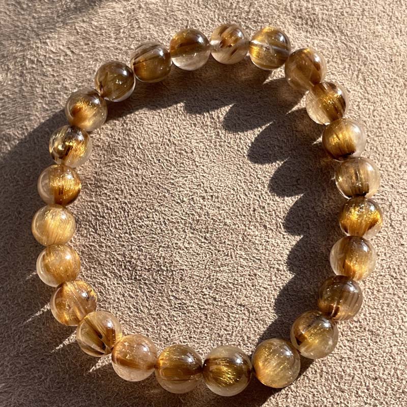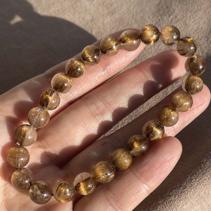 新入荷激安!希少品★ブラウンタイチンルチルクォーツ★キャッアイ効果あり★ブレスレット★約8.2mm★一点品★No.T-4