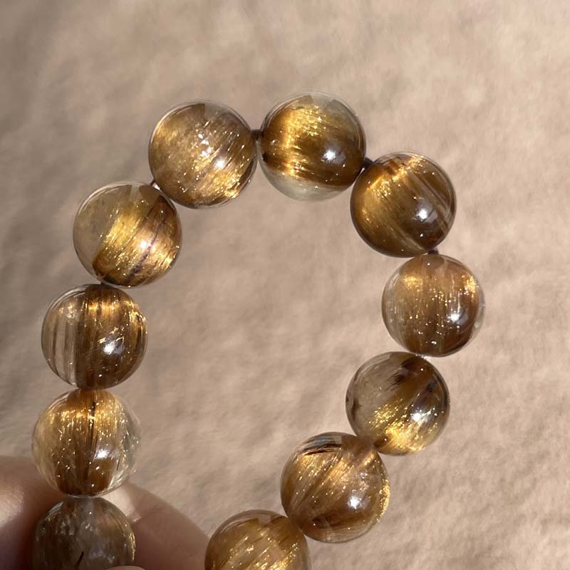 激安!希少品★ブラウンタイチンルチルクォーツ★キャッアイ効果あり★ブレスレット★約8.2mm★一点品★No.T-4