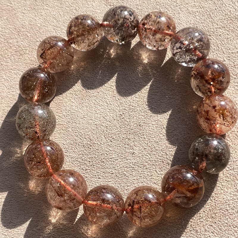 激安★希少品★天然無処理★ガーデンクォーツインミックスルチルクォーツ★約14.5mm★ブレスレット★現品★No.P-2