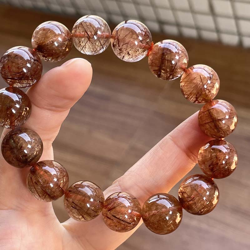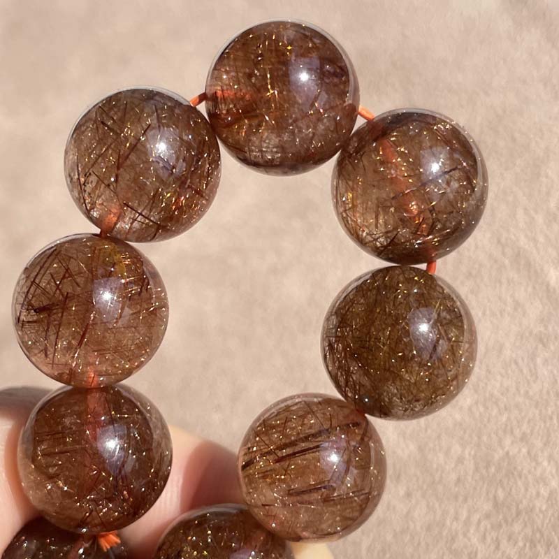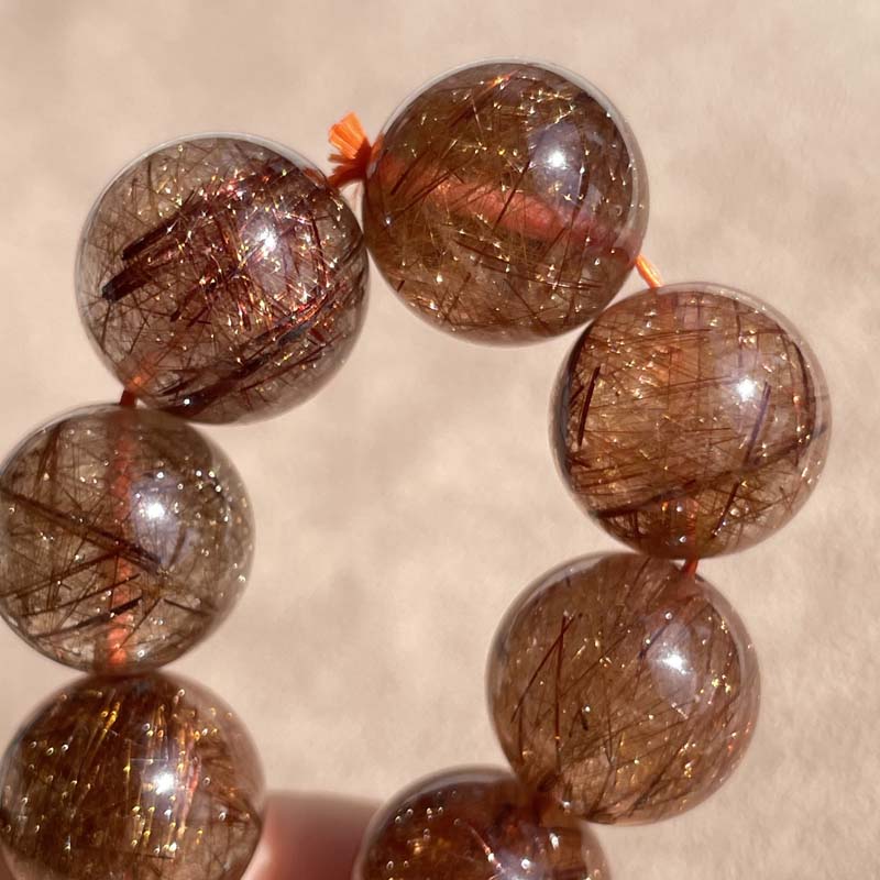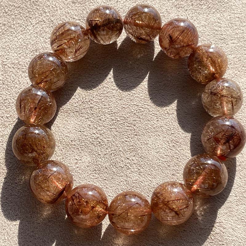新入荷激安★希少品★天然無処理★ブラウンルチルクォーツ★びっしり針★約14.6mm★ブレスレット★現品★No.P-3