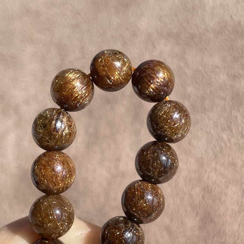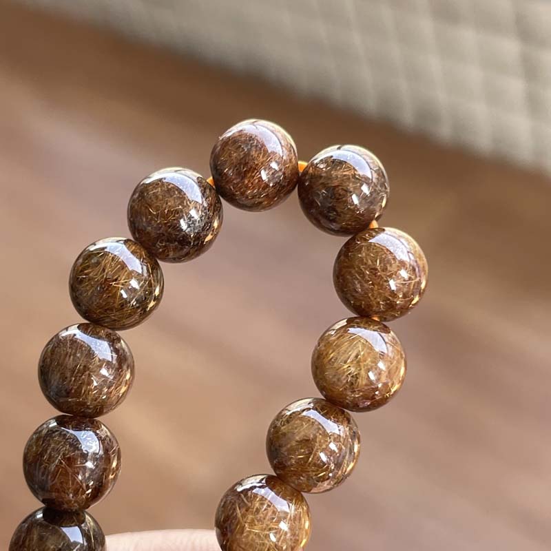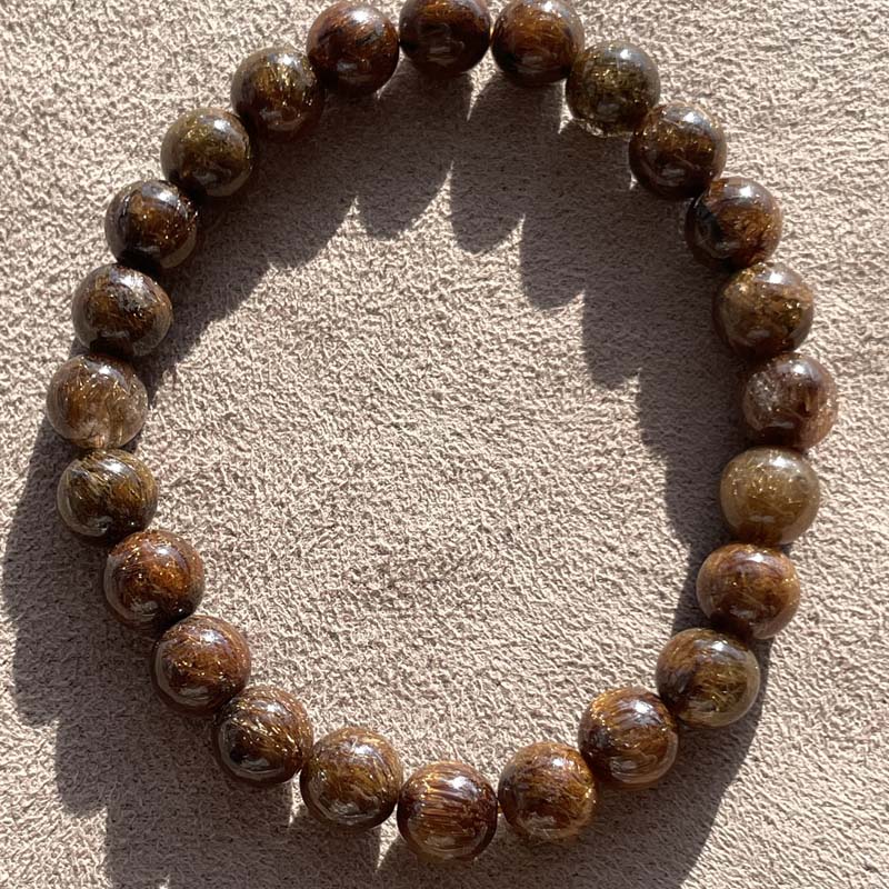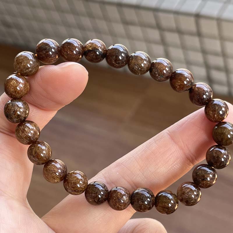 新入荷激安★希少品★天然無処理★ブラウンルチルクォーツ★キャッアイ★びっしり針★約7.8mm★ブレスレット★現品★No.P-8