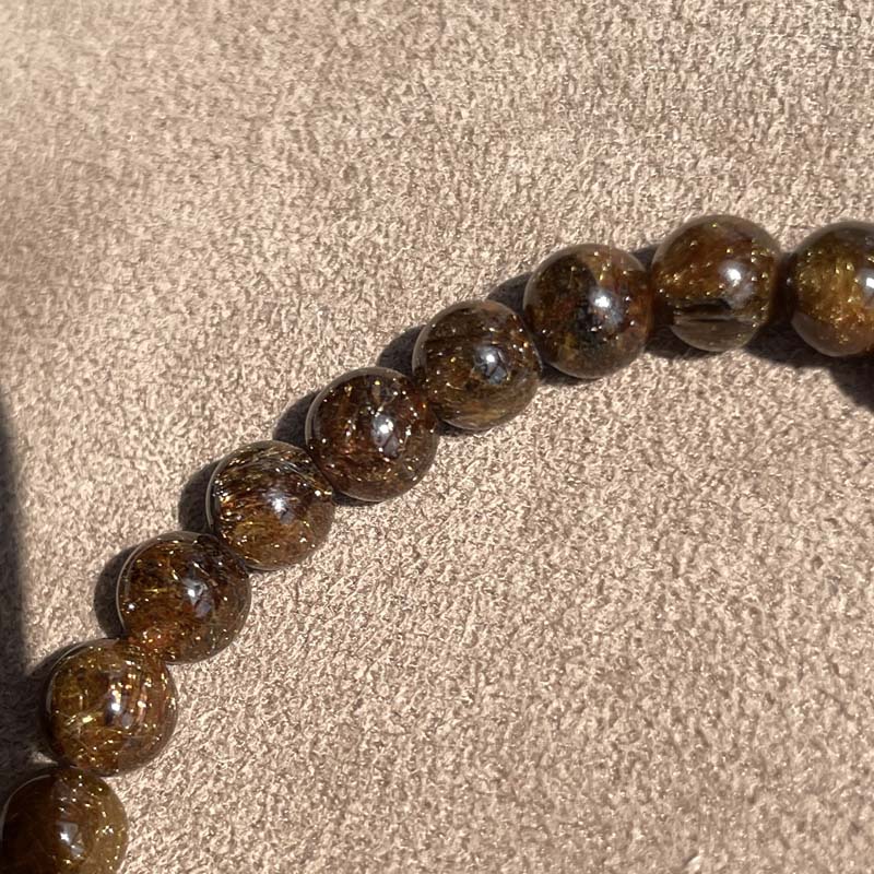 激安★希少品★天然無処理★ブラウンルチルクォーツ★キャッアイ★びっしり針★約6.5mm★ブレスレット★現品★No.P-10