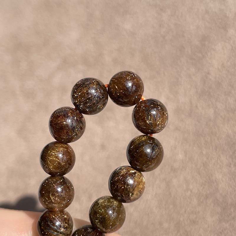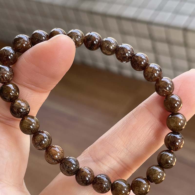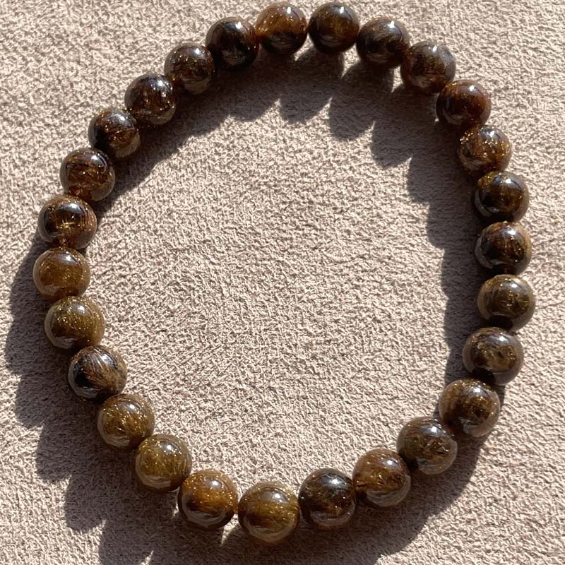 新入荷激安★希少品★天然無処理★ブラウンルチルクォーツ★キャッアイ★びっしり針★約6.5mm★ブレスレット★現品★No.P-10