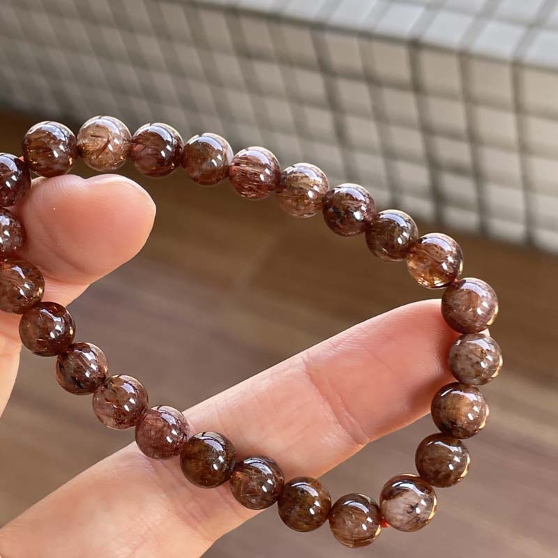 新入荷激安★希少品★天然無処理★ブラウンルチルクォーツ★キャッアイ★びっしり針★約7.2mm★ブレスレット★現品★No.P-11