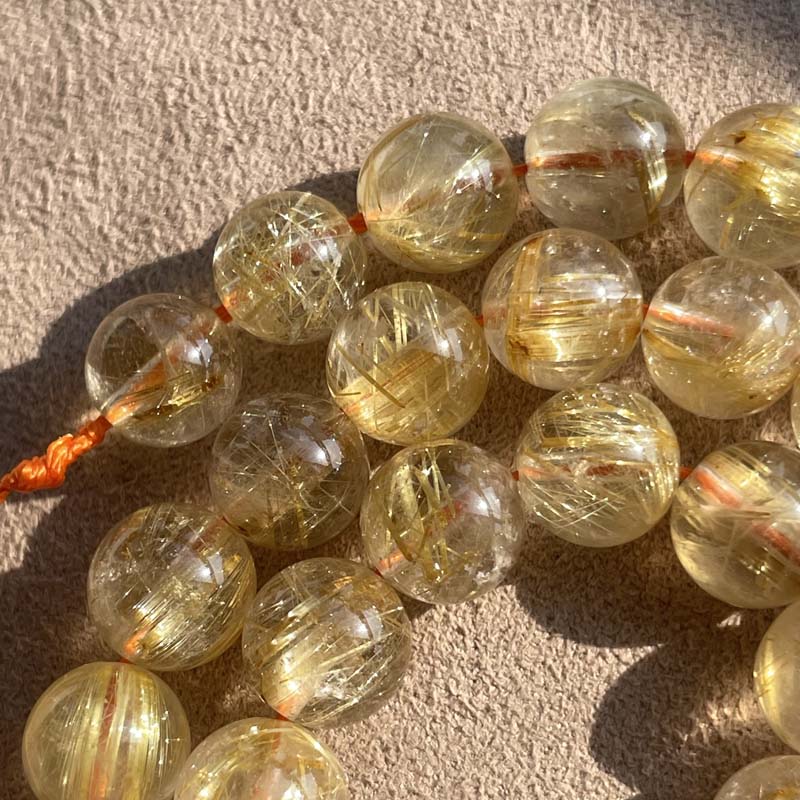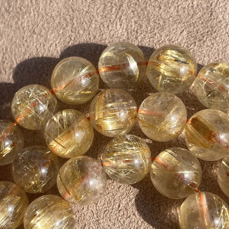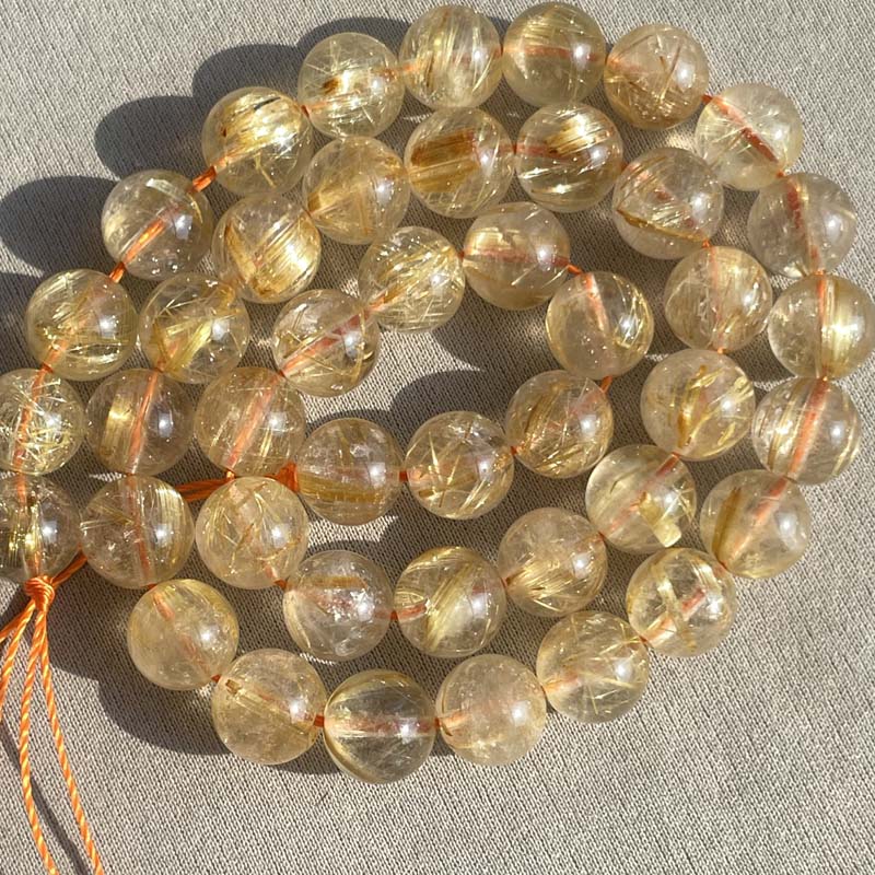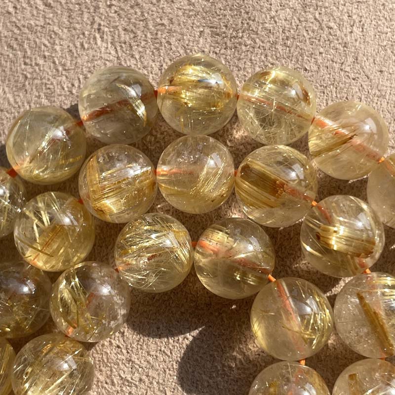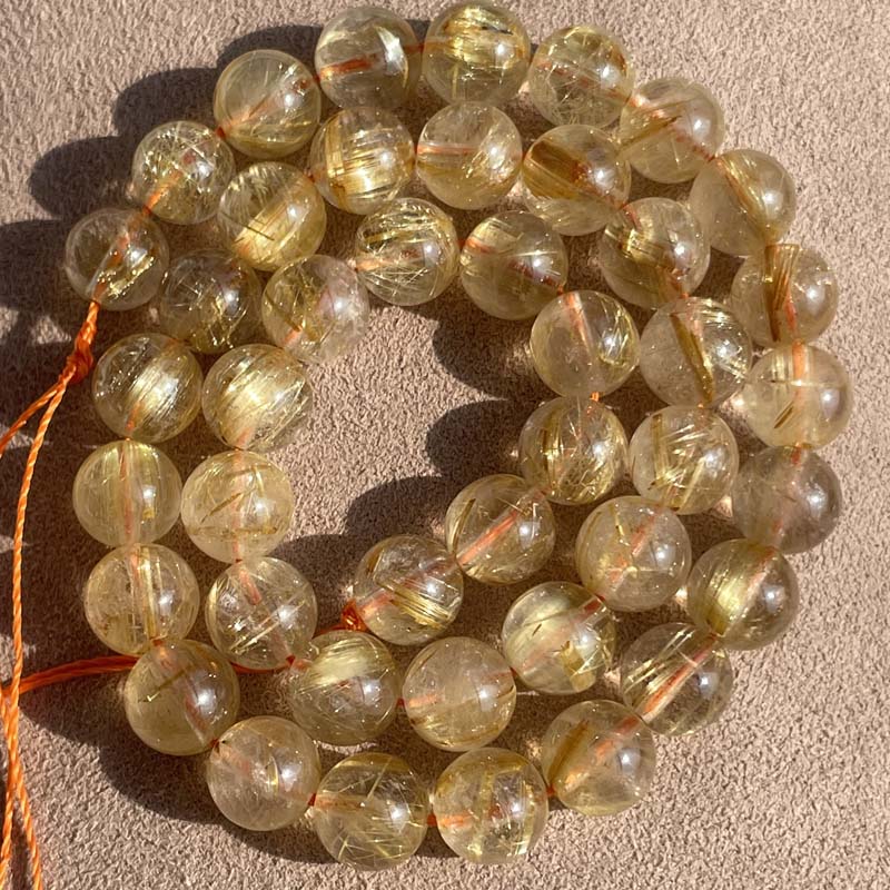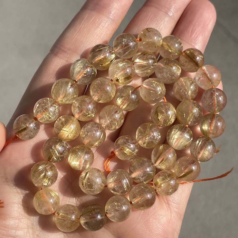 激安!お買得品★キラキラ★キャッアイタイチンゴールドルチルクォーツ★天然無処理★一連販売★約9mm★現品★No.B-10