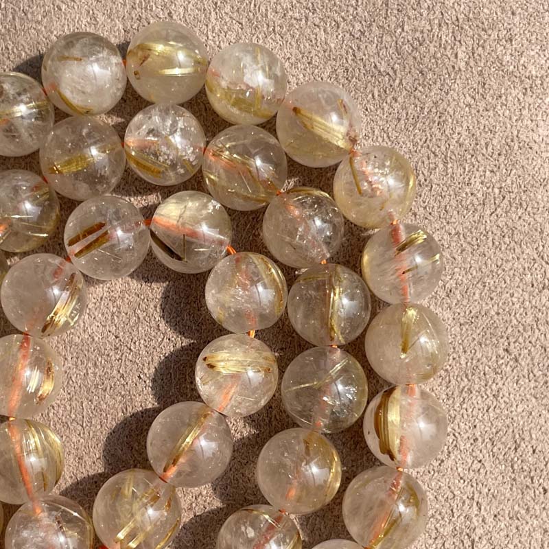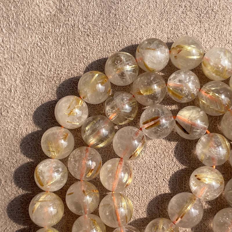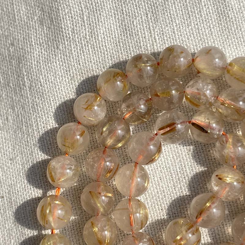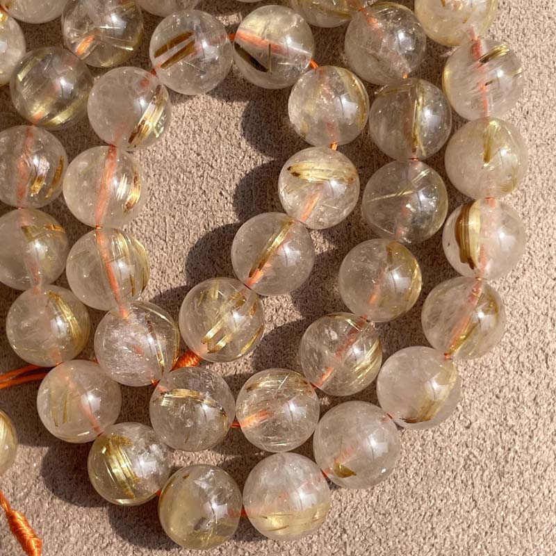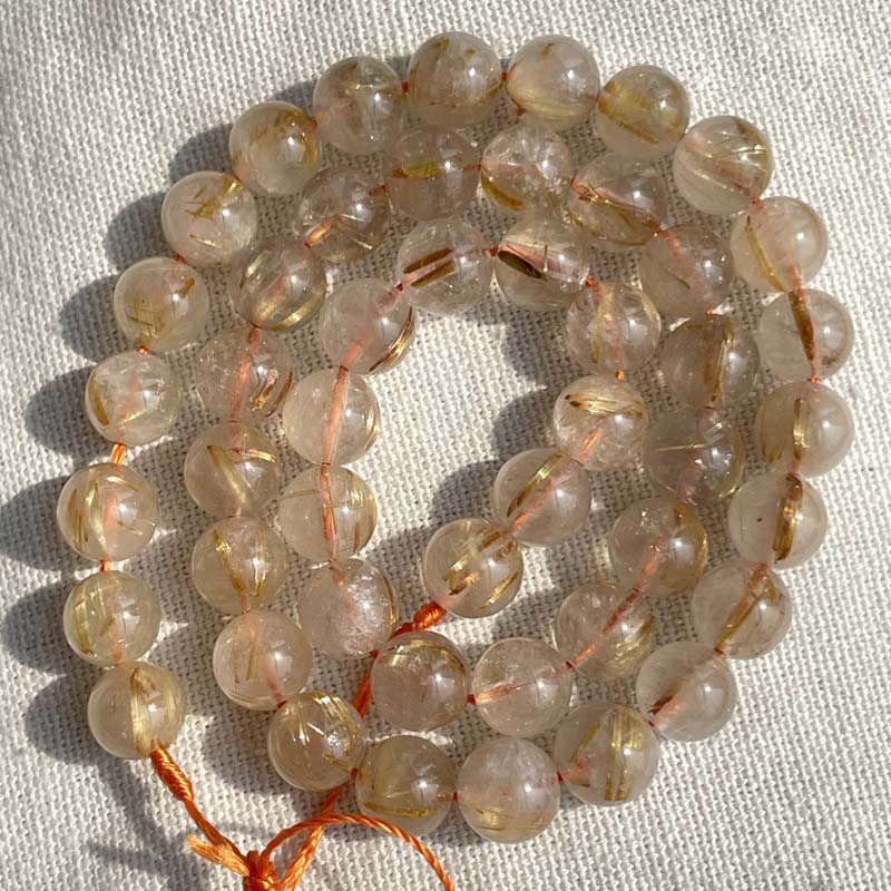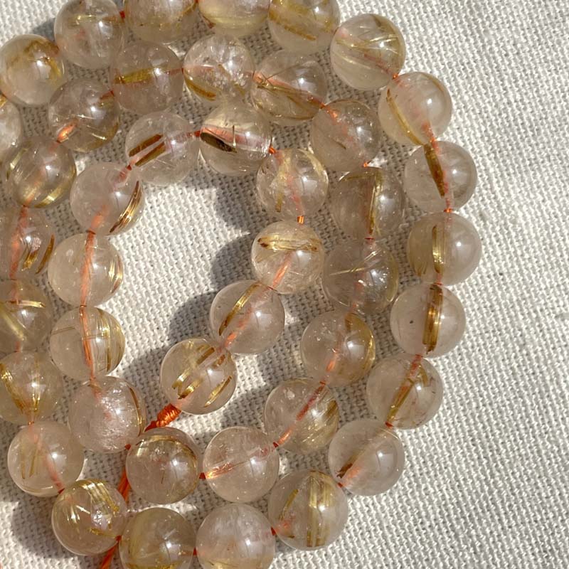 新入荷激安!お買得品★キラキラ★半透明感★ゴールドルチルクォーツ★天然無処理★一連販売★約8mm★現品★No.F-4
