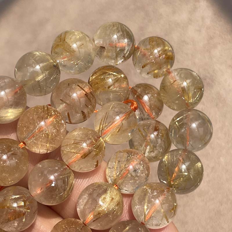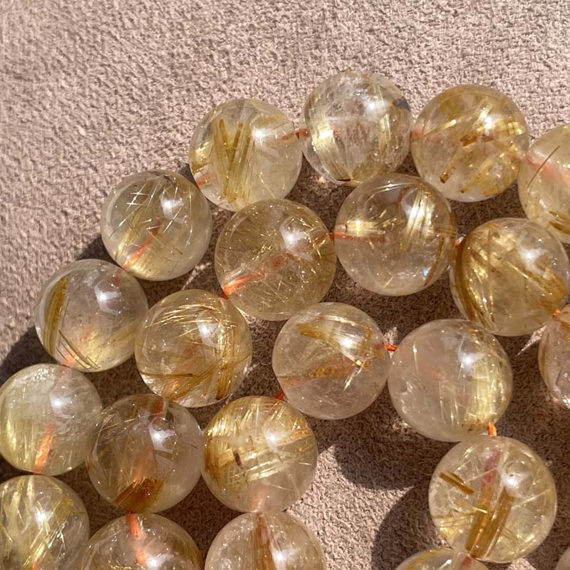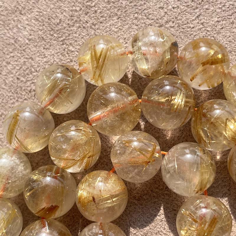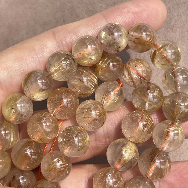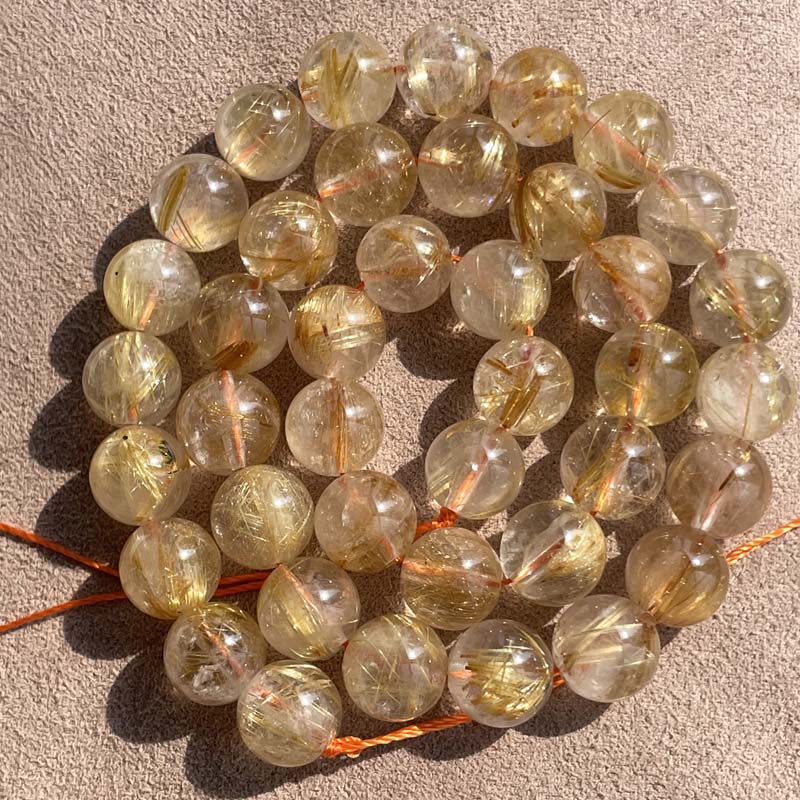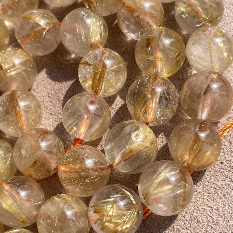 新入荷激安!お買得品★キラキラ★半透明感★ゴールドルチルクォーツ★天然無処理★一連販売★約10mm★現品★No.F-5