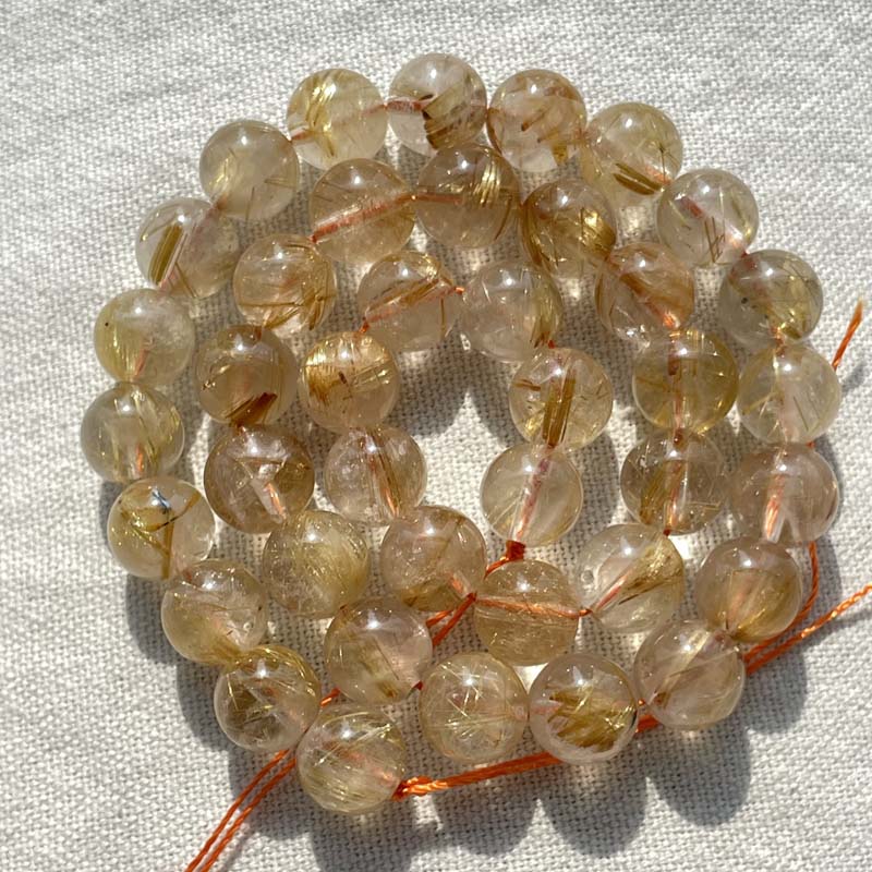 激安!お買得品★キラキラ★半透明感★ゴールドルチルクォーツ★天然無処理★一連販売★約10mm★現品★No.F-5