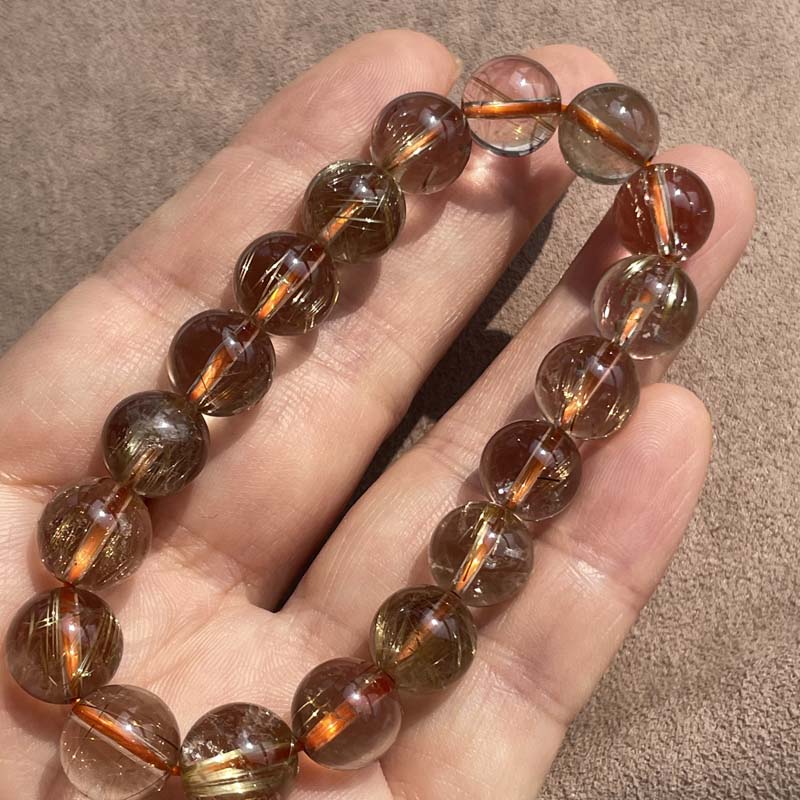 新入荷激安!お買得品★キラキラ★透明感良し★ゴールドルチルクォーツ★天然無処理★ブレスレット★約10.5mm★現品★No.F-9
