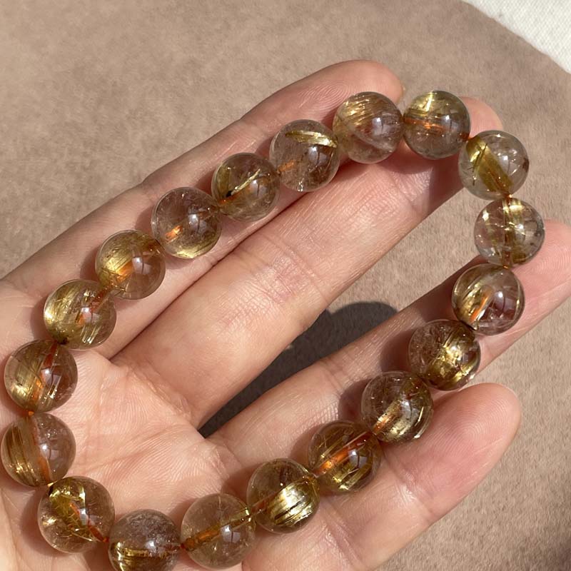 激安!お買得品★キラキラ★高品質★タイチンゴールドルチルクォーツ★天然無処理★ブレスレット★約10.5mm★現品★No.F-13