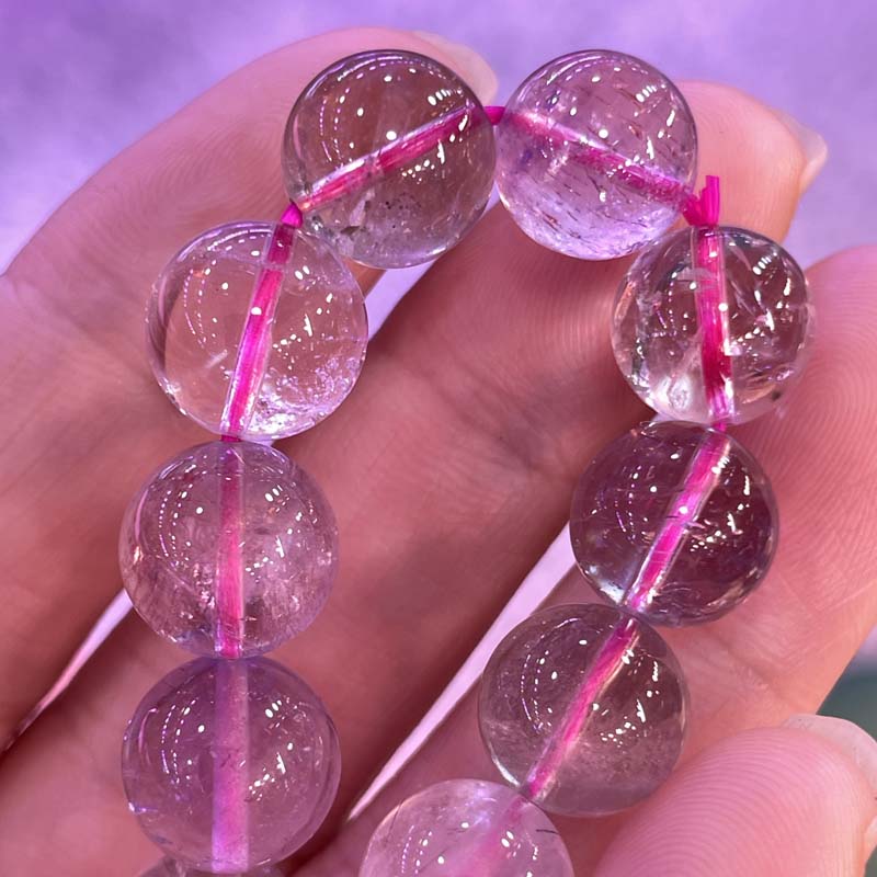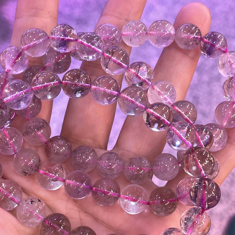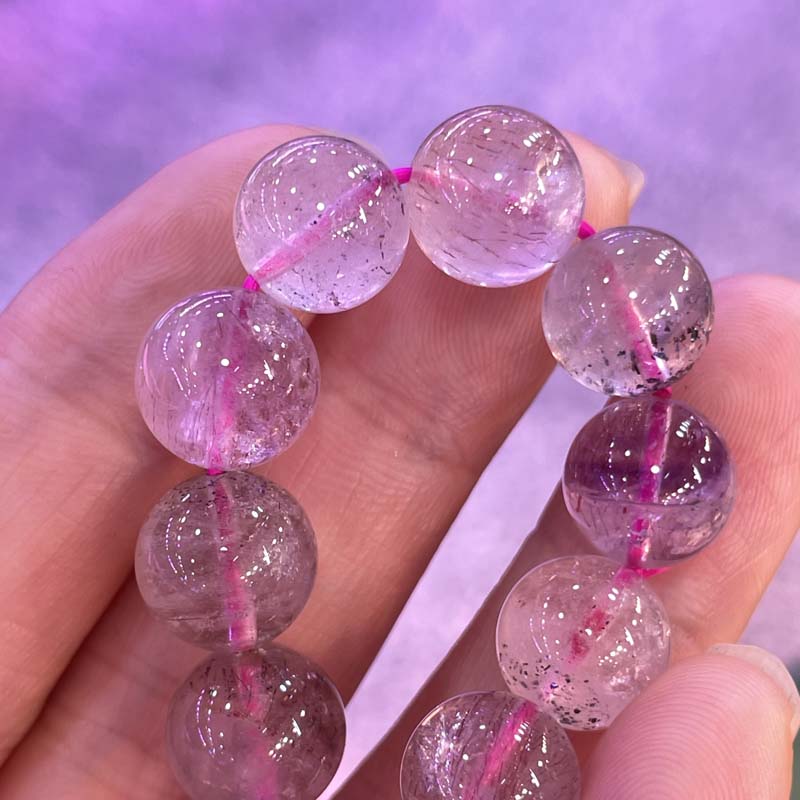 新入荷希少石!激安販売★ピンクスーパーセブン★ブレスレット★透明感良い★約10mm★アソート★一本販売