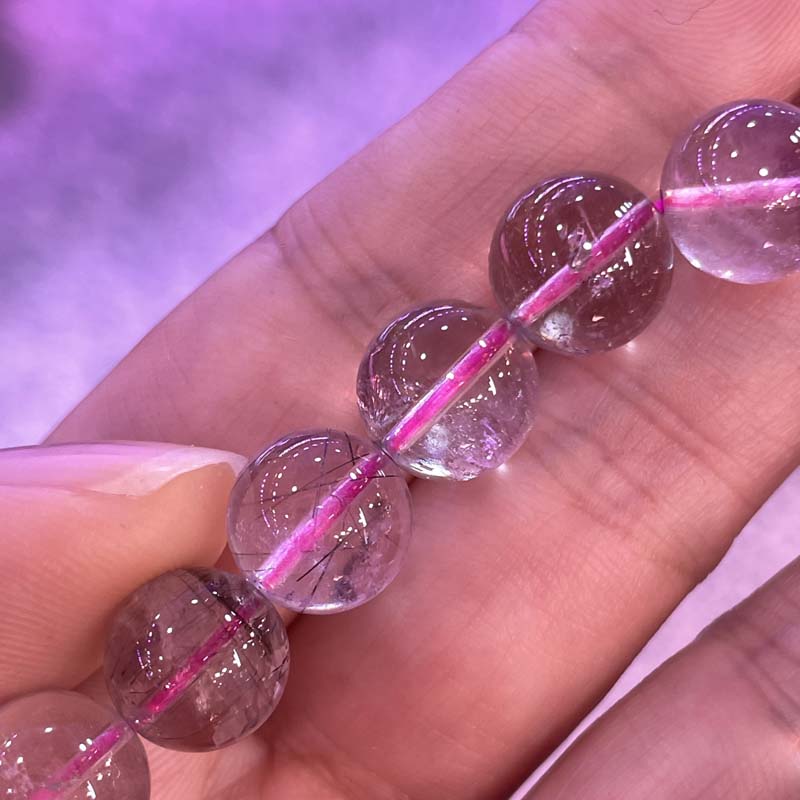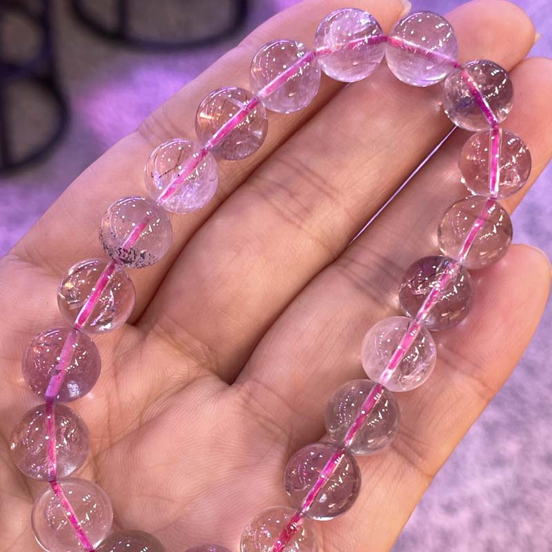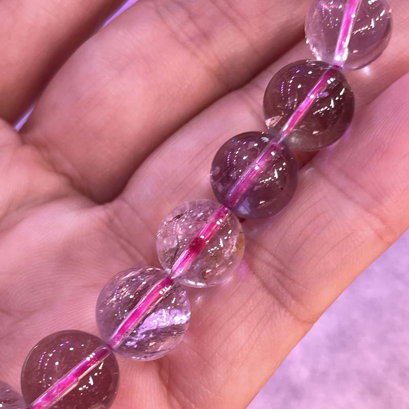 希少石!激安販売★ピンクスーパーセブン★ブレスレット★透明感良い★約10mm★アソート★一本販売