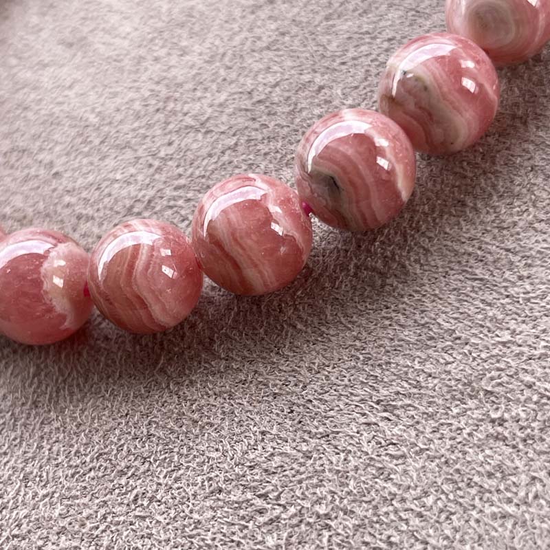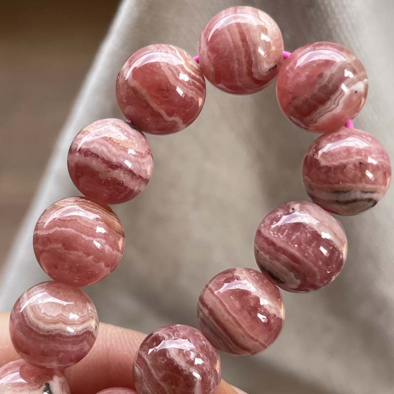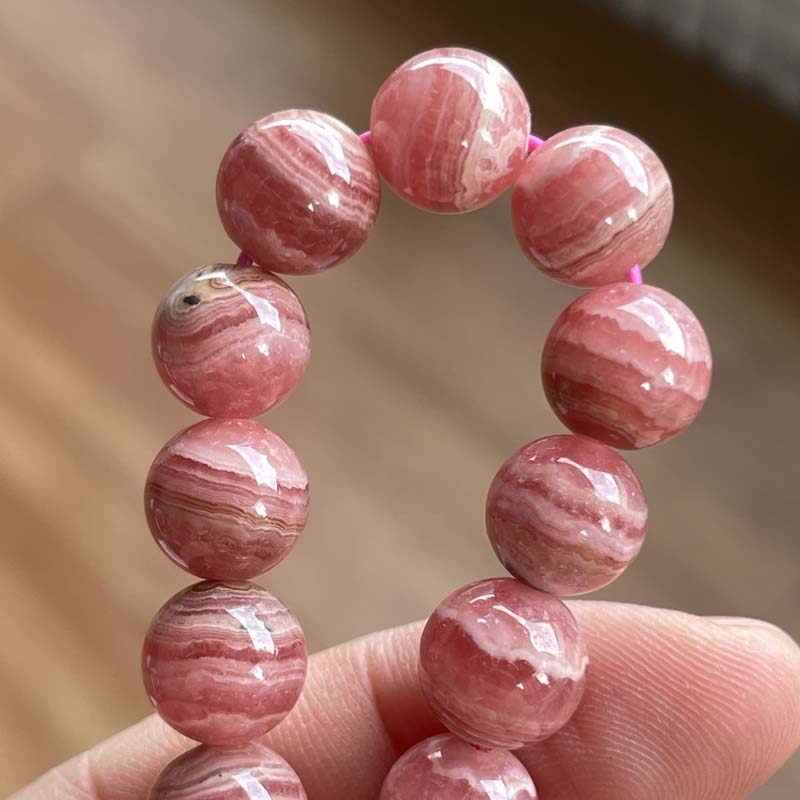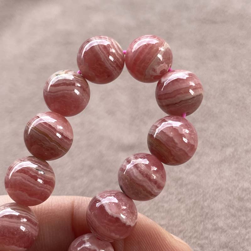 激安!バラ色の石!インカローズ★縞模様あり★ブレスレット★ロードクロサイト◆約9.0mm★現品★No.B-1