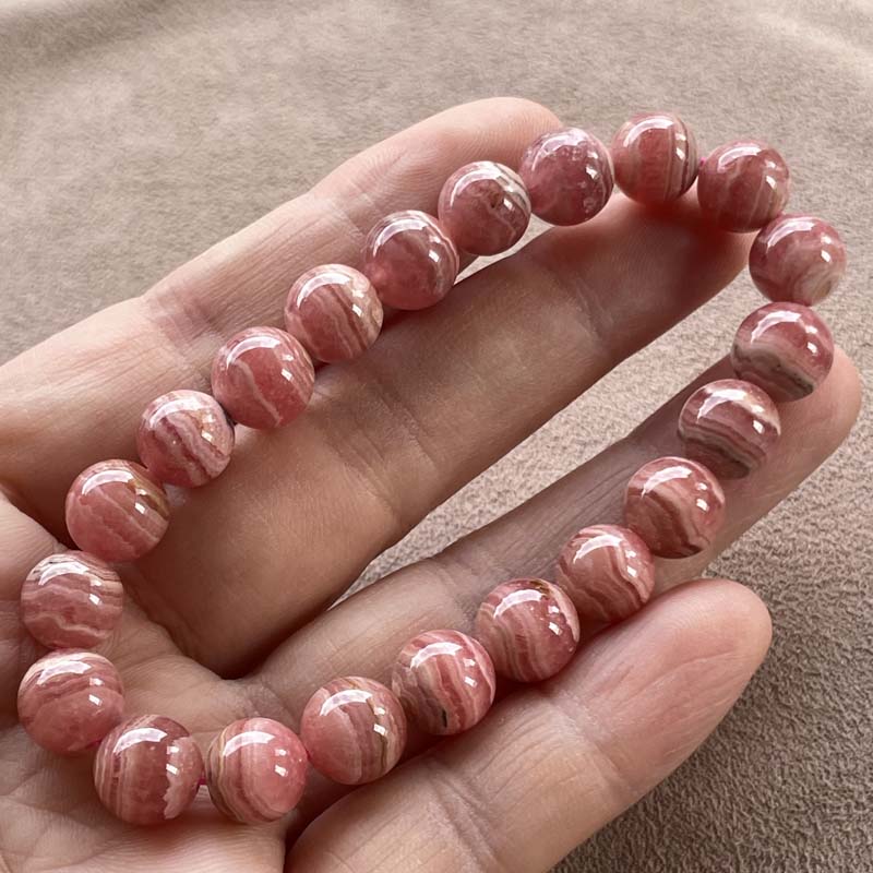 新入荷激安!バラ色の石!インカローズ★縞模様あり★ブレスレット★ロードクロサイト◆約9.0mm★現品★No.B-1