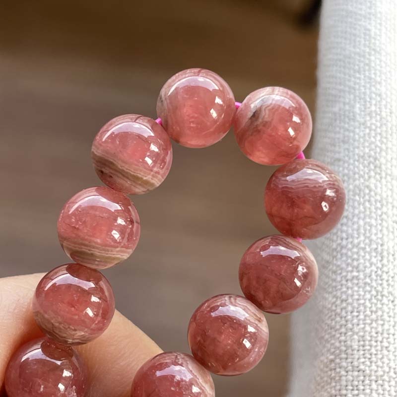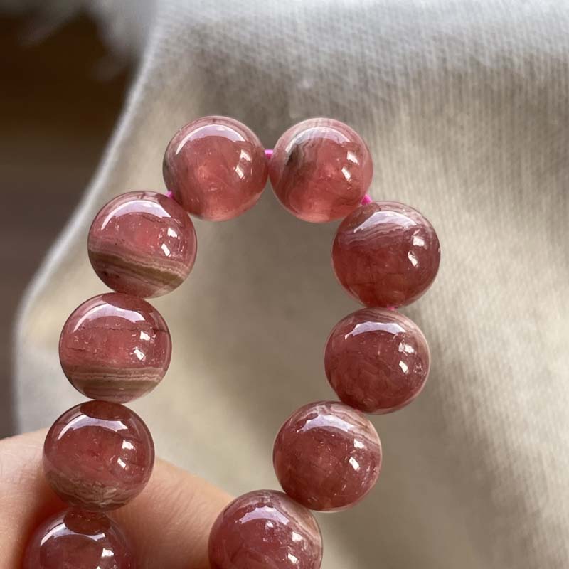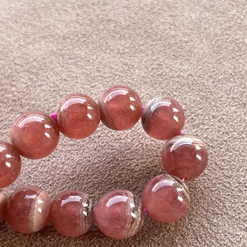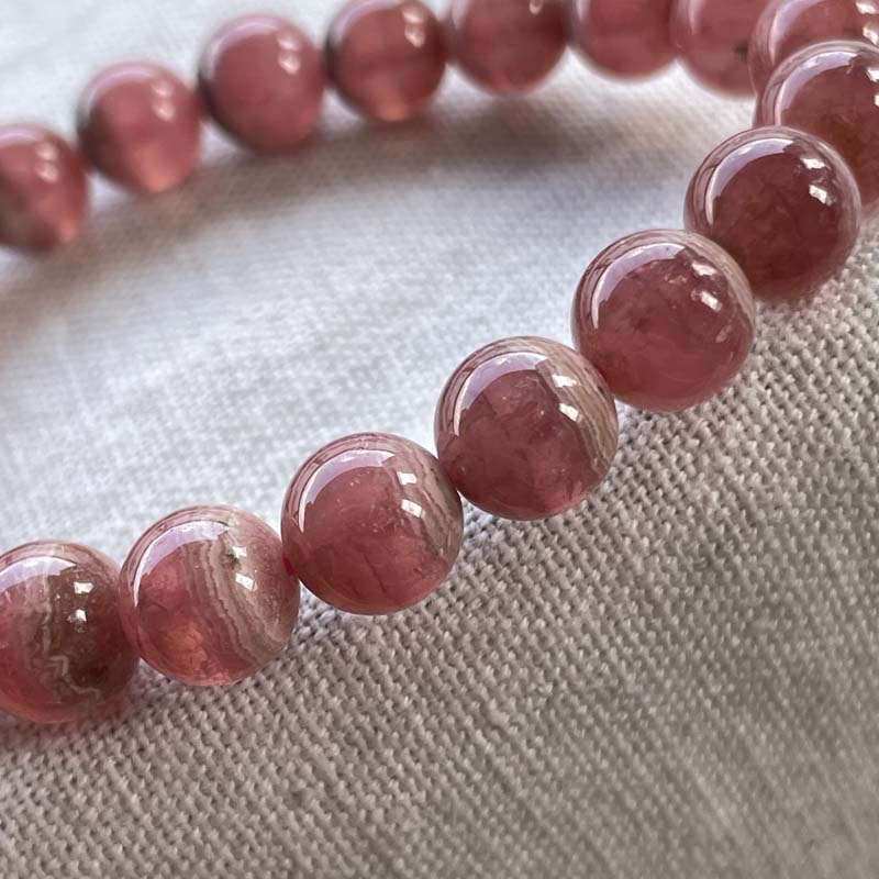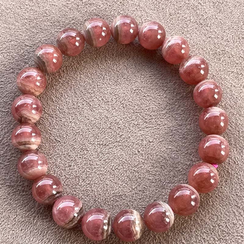 新入荷激安!バラ色の石!インカローズ★縞模様あり★ブレスレット★ロードクロサイト◆約9.0mm★現品★No.B-4