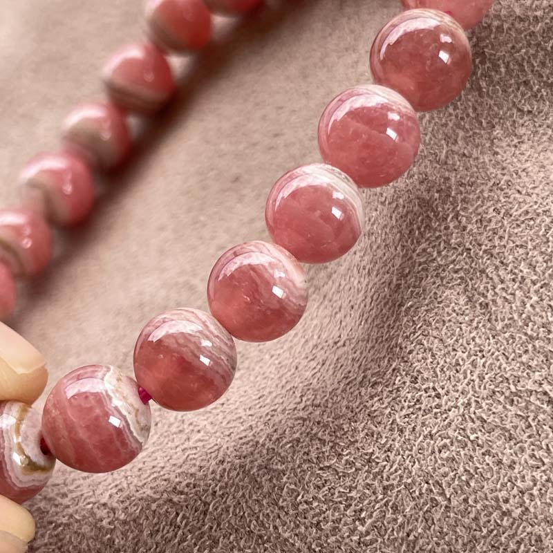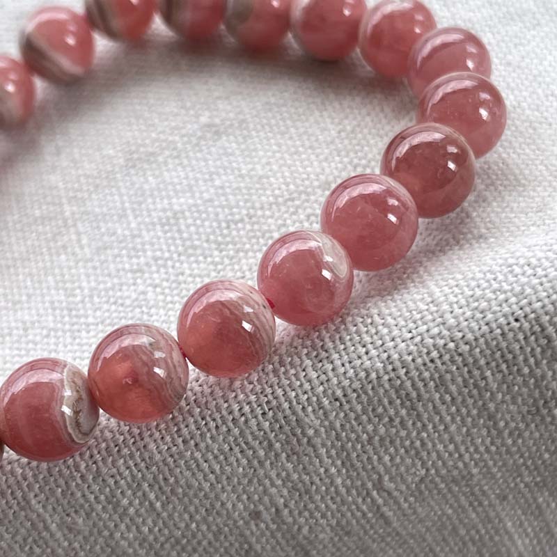 新入荷激安!バラ色の石!インカローズ★縞模様あり★ブレスレット★ロードクロサイト◆約8.0mm★現品★No.B-8