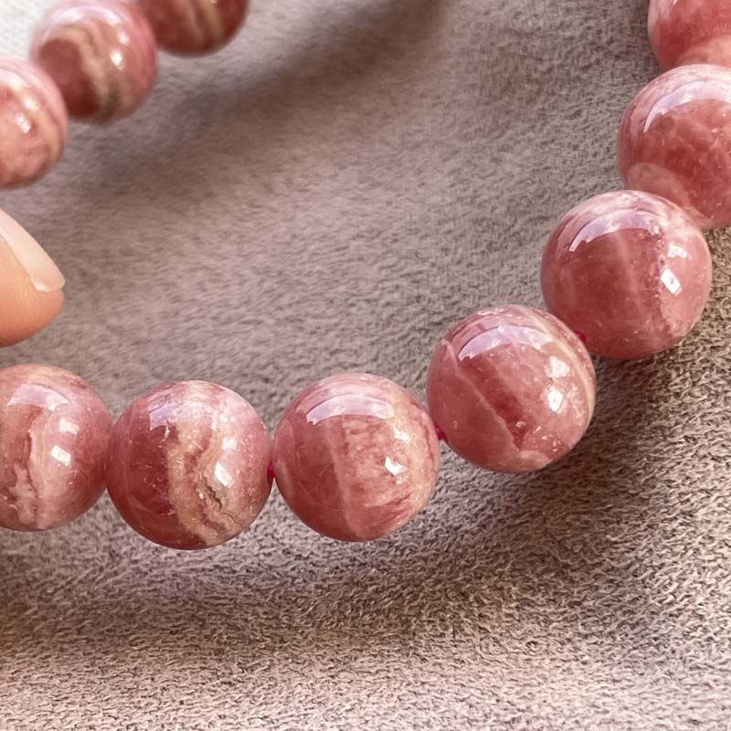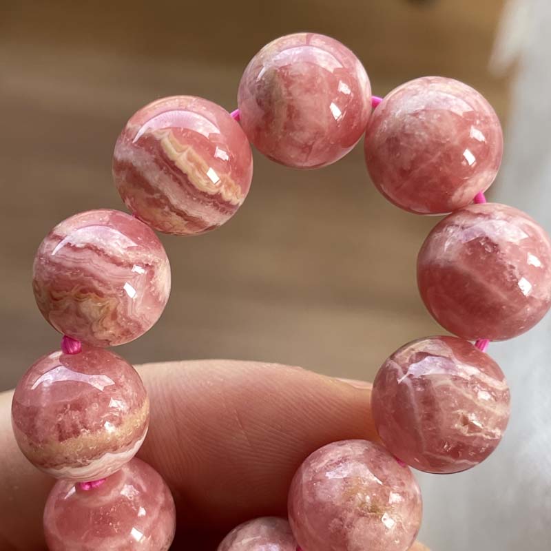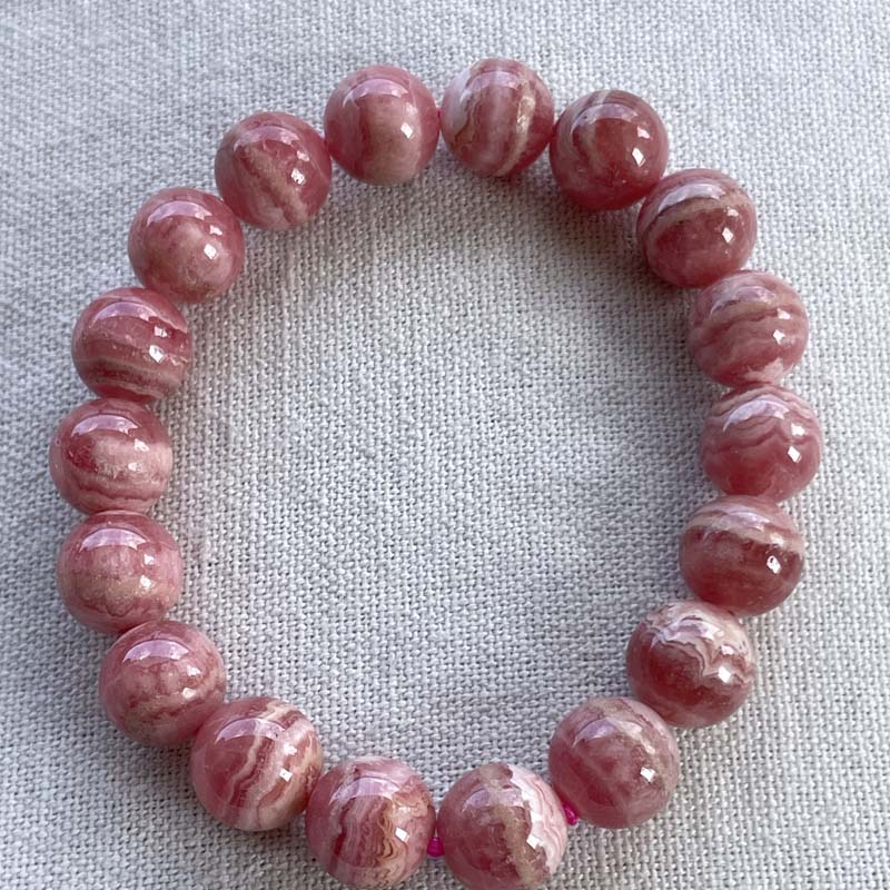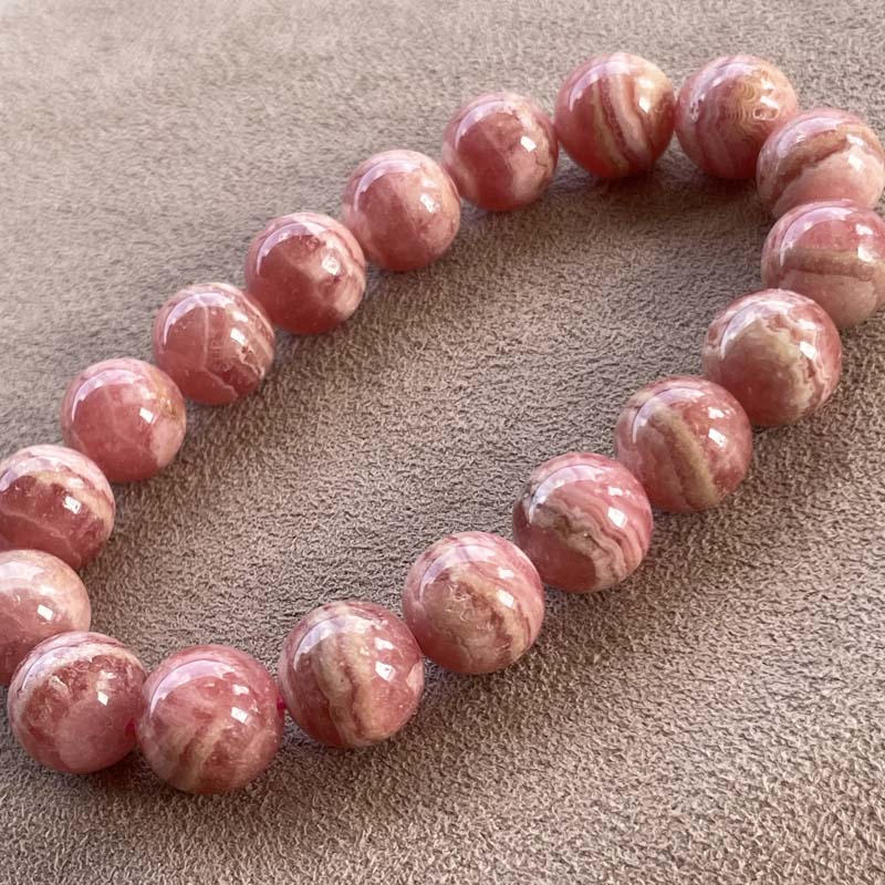 新入荷激安!バラ色の石!インカローズ★縞模様あり★ブレスレット★ロードクロサイト◆約12.0mm★現品★No.B-14