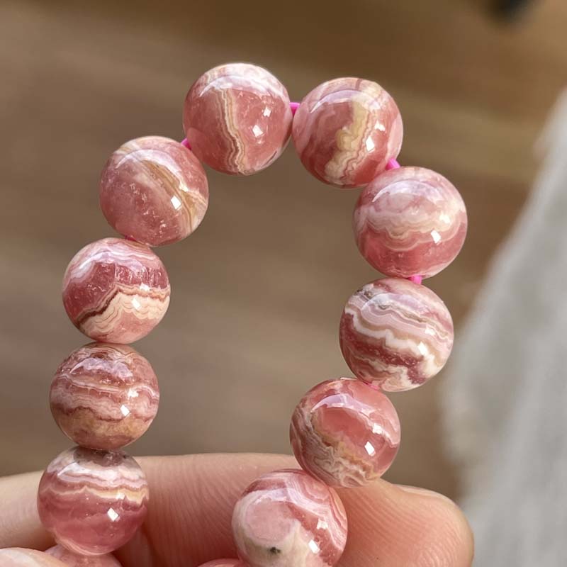 新入荷激安!バラ色の石!インカローズ★縞模様あり★ブレスレット★ロードクロサイト◆約8.0mm★現品★No.B-20