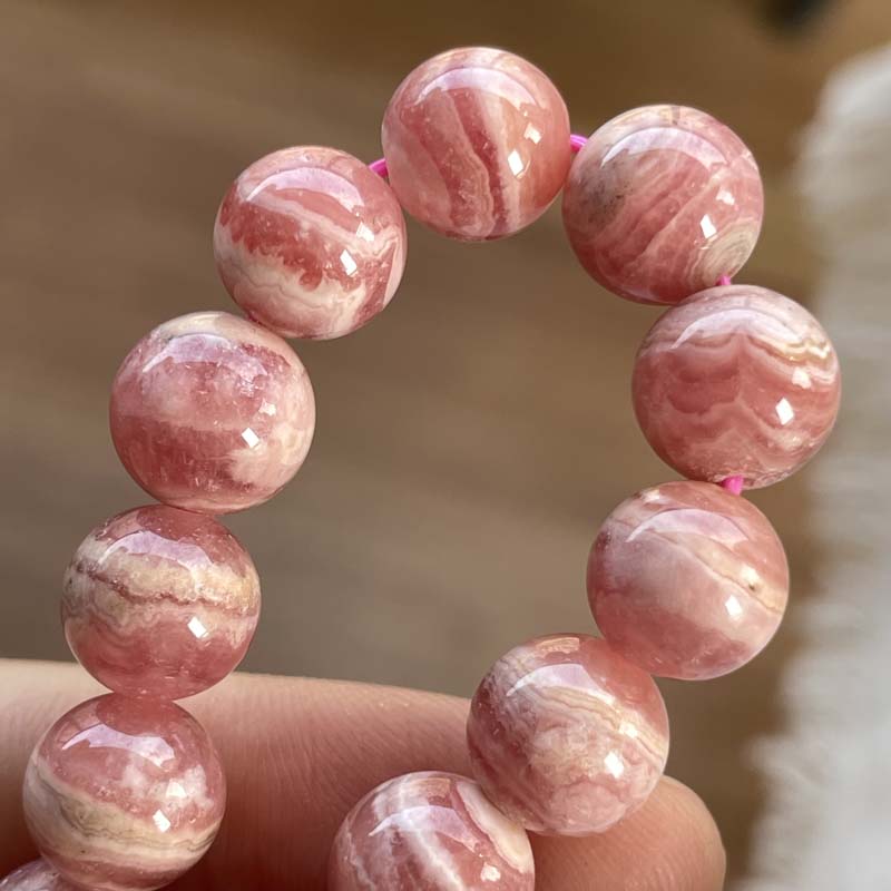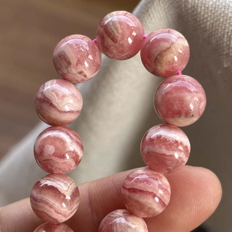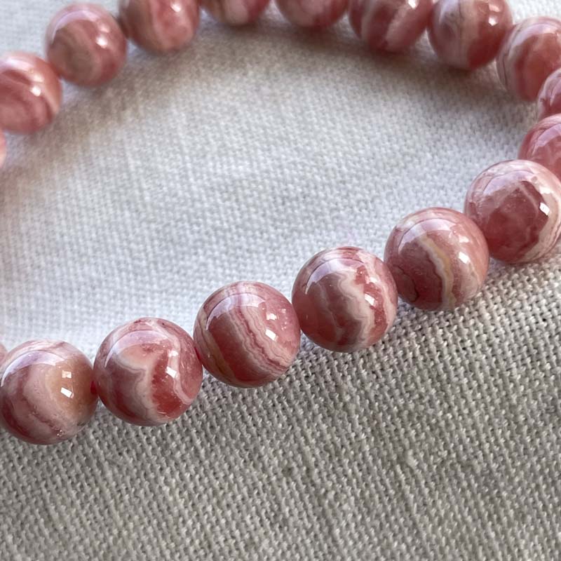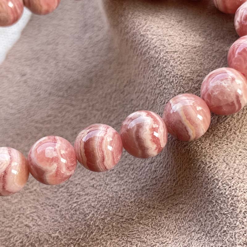 激安!バラ色の石!インカローズ★縞模様あり★ブレスレット★ロードクロサイト◆約9.0mm★現品★No.B-21