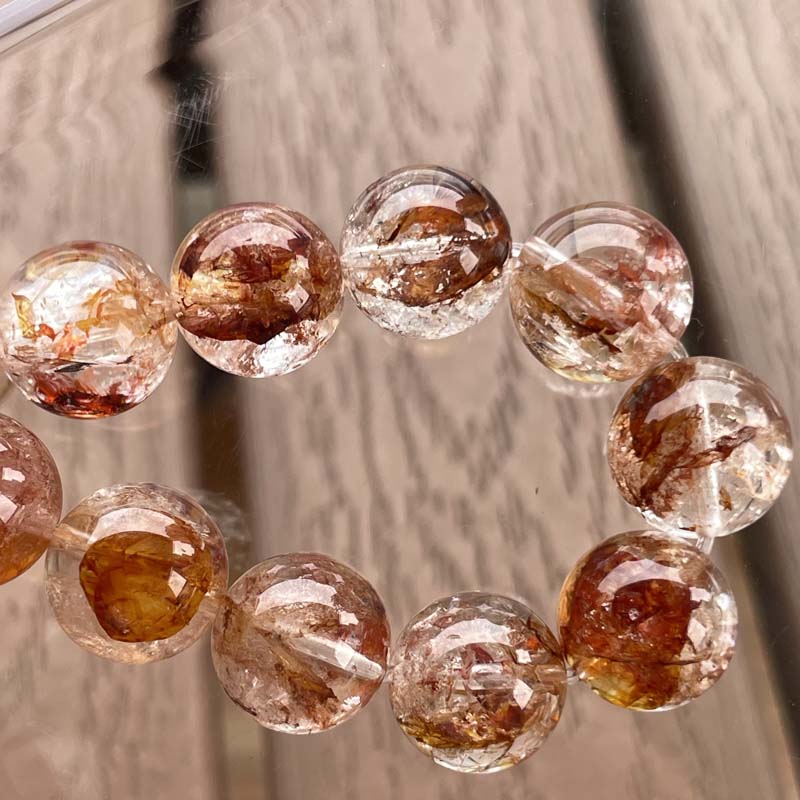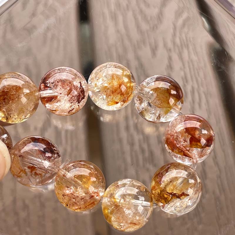 希少品★激安★天然無処理★キラキラ★ライモナイトインクォーツ★約11.2mm★ブレスレット★現品★No.F-7