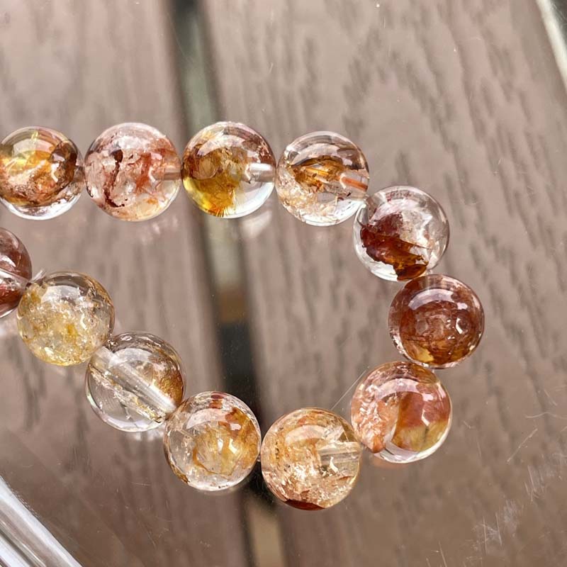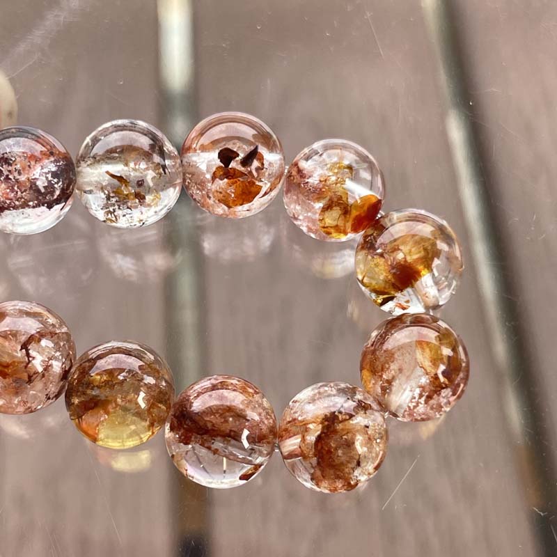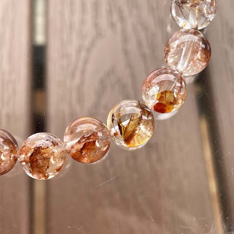 希少品★激安★天然無処理★キラキラ★ライモナイトインクォーツ★約8mm★ブレスレット★現品★No.F-17