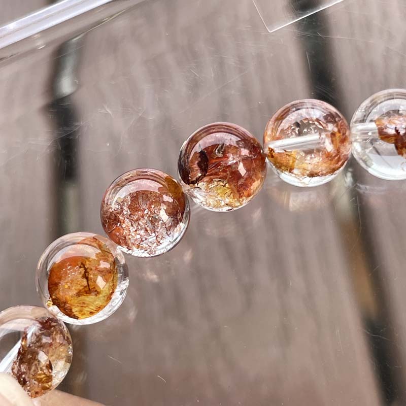希少品★激安★天然無処理★キラキラ★ライモナイトインクォーツ★約8.5mm★ブレスレット★現品★No.F-18