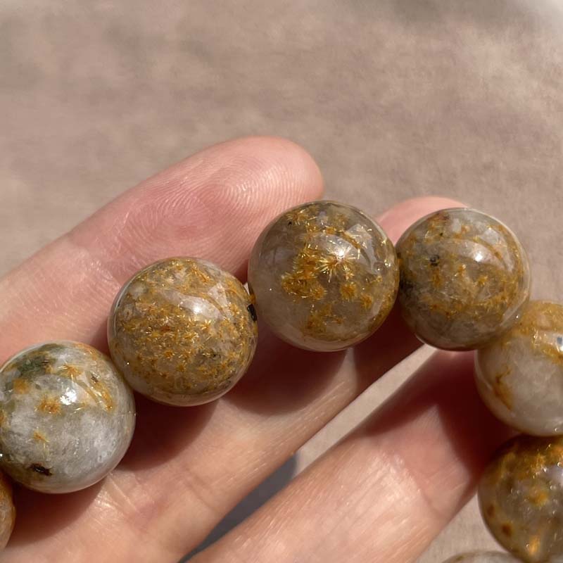 新入荷激安★希少品★天然無処理★フラワールチルクォーツ★約14.3mm★【スターバースト】★ブレスレット★現品★No.B-18