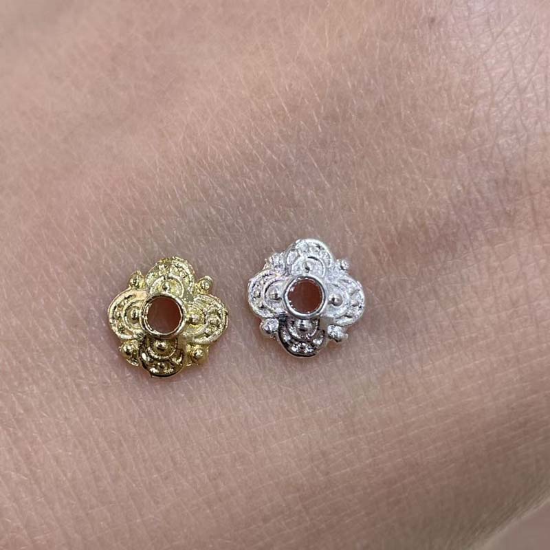 四つ葉直径:約8mm 丸玉パーツ直径:約3.0mm 穴のサイズ:約1.2mm 材質:合金製
